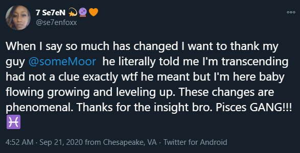 “You’ve opened my eyes on a situation I didn’t think I was blinded from. People get so mad when you rise from their bullshit. You’ve REMINDED me how to go about my situation and I thank you.”